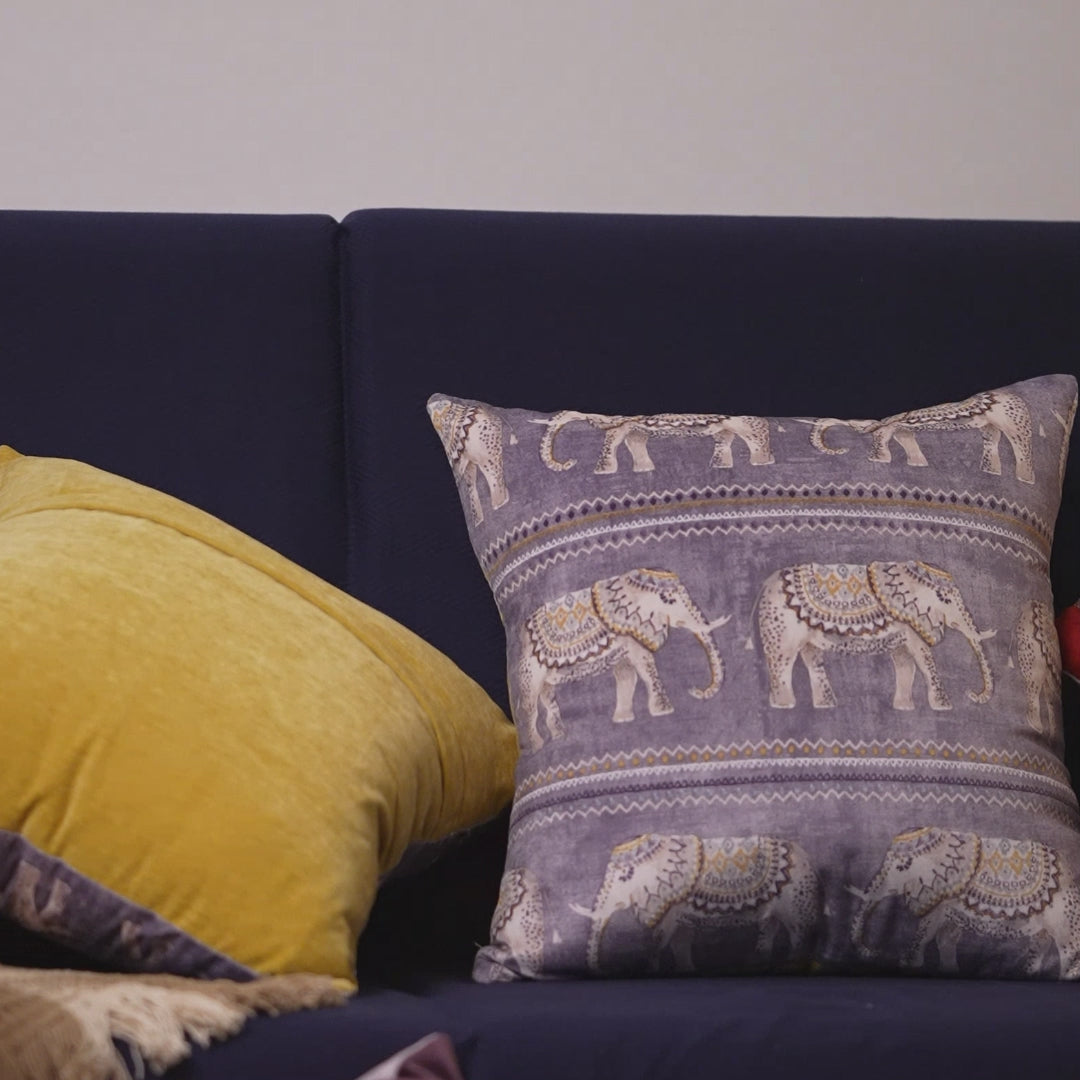 Bring home a touch of heritage and elegance with Tusk ki Roshni cushion covers. Made from lightweight premium velvet, this set features a charming elephant pattern, combining comfort with a rich decorative appeal—perfect for cozy lounging or elevating your interiors.